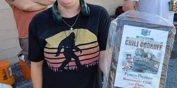 Amber laughs as she shares her joy from winning first place for her HellBelly HomeStyle Chili recipe.